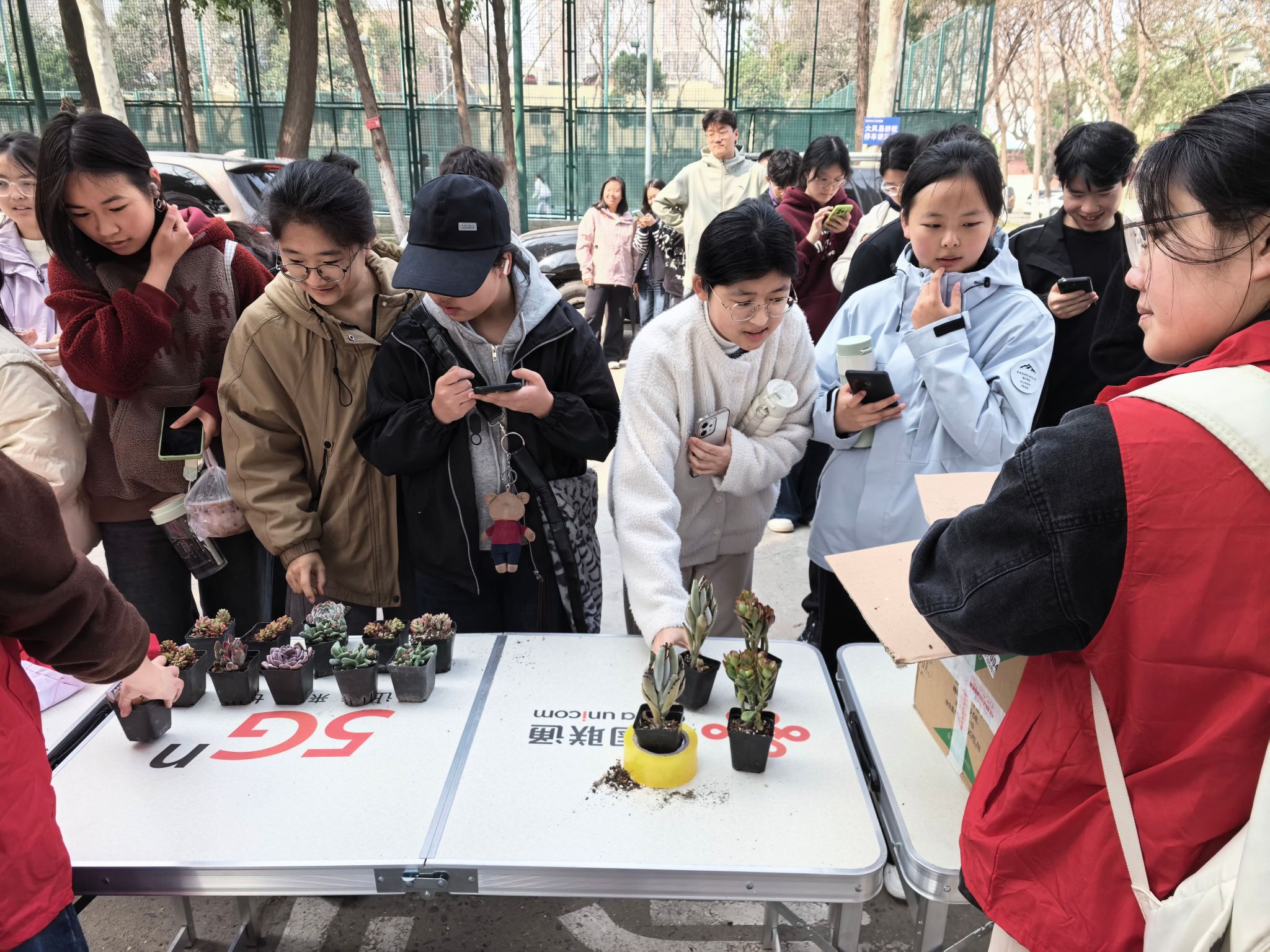 活动现场暖意融融,红色志愿马甲与嫩绿绿植相映成趣。学子们捧着专属绿植、欣赏手绘作品,成就感十足,不少人自发参与场地清洁,以实际行动践行雷锋精神。大家纷纷表示,此次活动将学雷锋与环保实践深度结合,既种下绿意,更筑牢奉献意识。