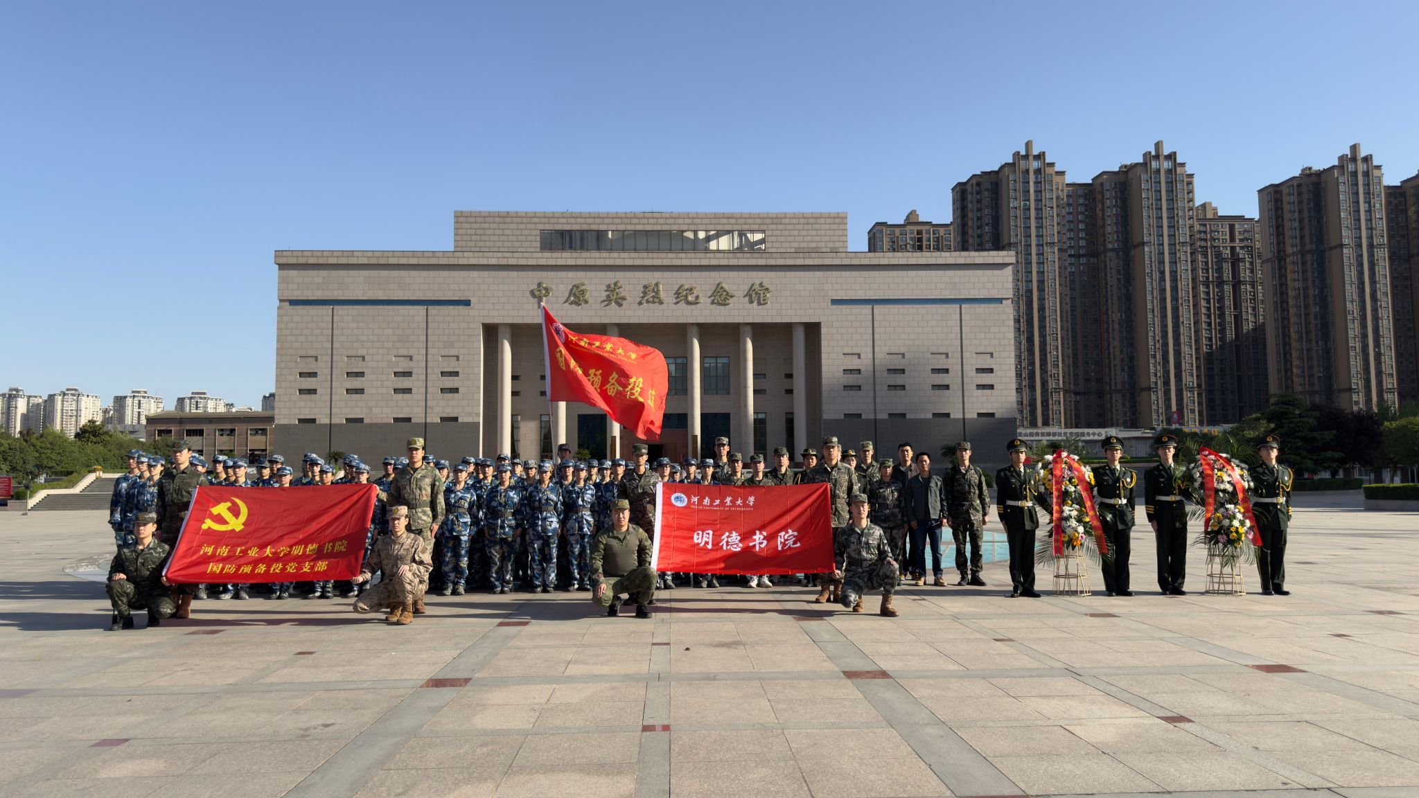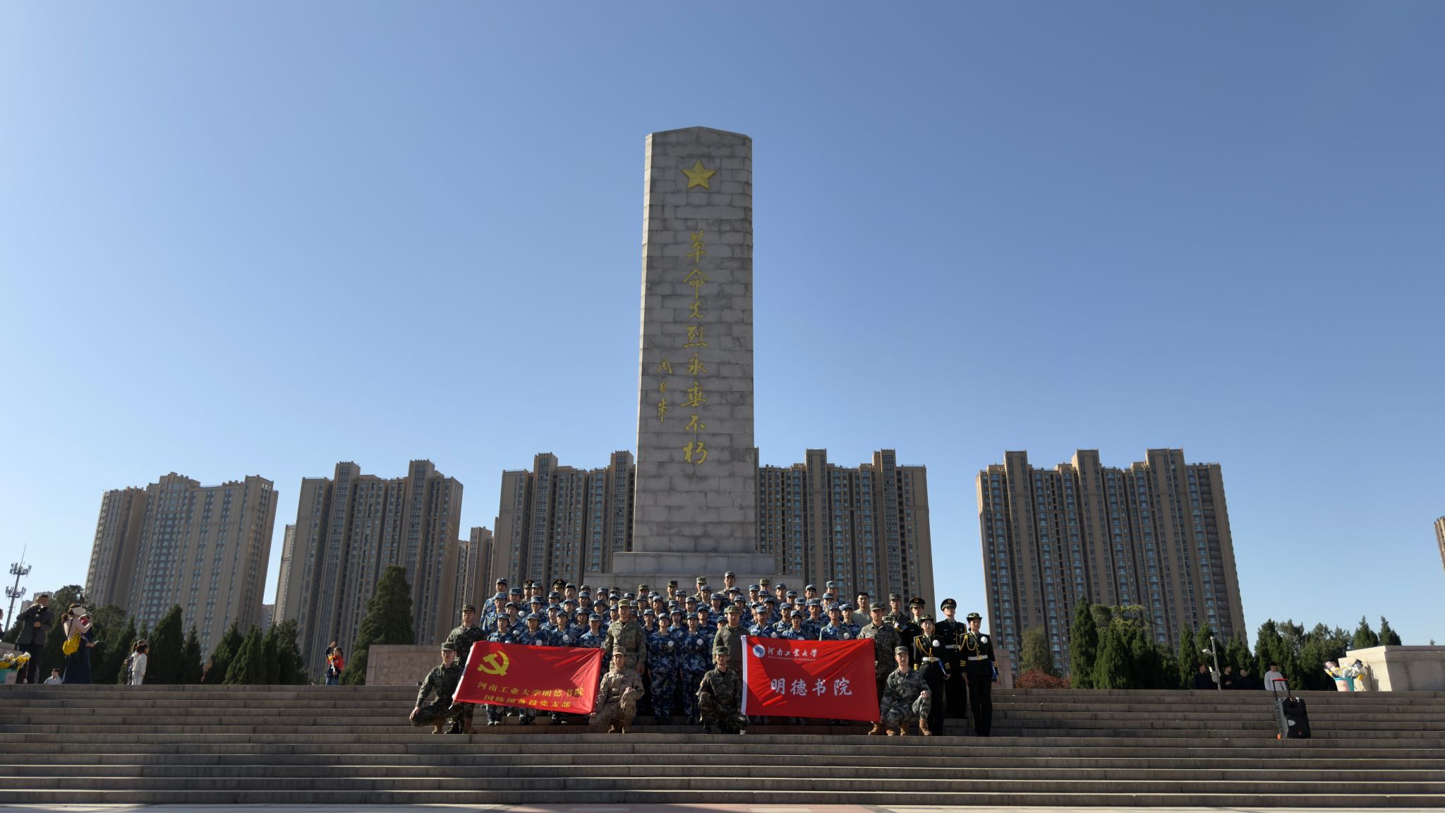 为全面落实立德树人根本任务,以党建引领深化爱国主义教育与国防教育融合发展,引导广大青年学子缅怀革命先烈、厚植家国情怀,4月4日上午,明德书院组织国防预备役党支部党员、国防预备役连队员、退役士兵代表等共计100人步行前往郑州市烈士陵园和中原英烈纪念馆,开展清明节祭扫革命英烈主题教育活动。