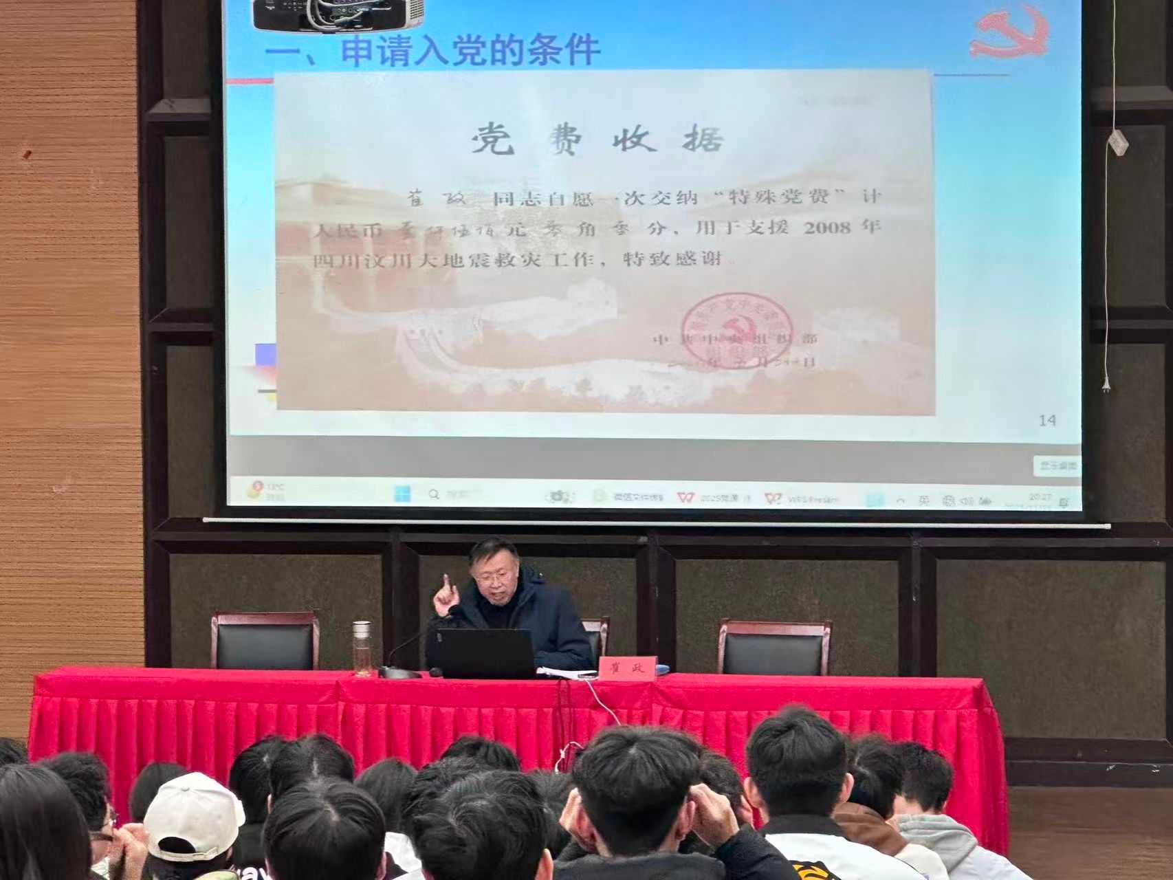 全体起立,奏唱国际歌。歌声激昂,信念如磐。本期开班仪式的顺利举行,进一步增强了入党积极分子对党的认识,激发了学员的学习热情,为持续加强书院党的建设、提升学生思想政治教育工作水平奠定了坚实基础。仪式结束后,崔政教授为学员们带来了精彩的第一课。