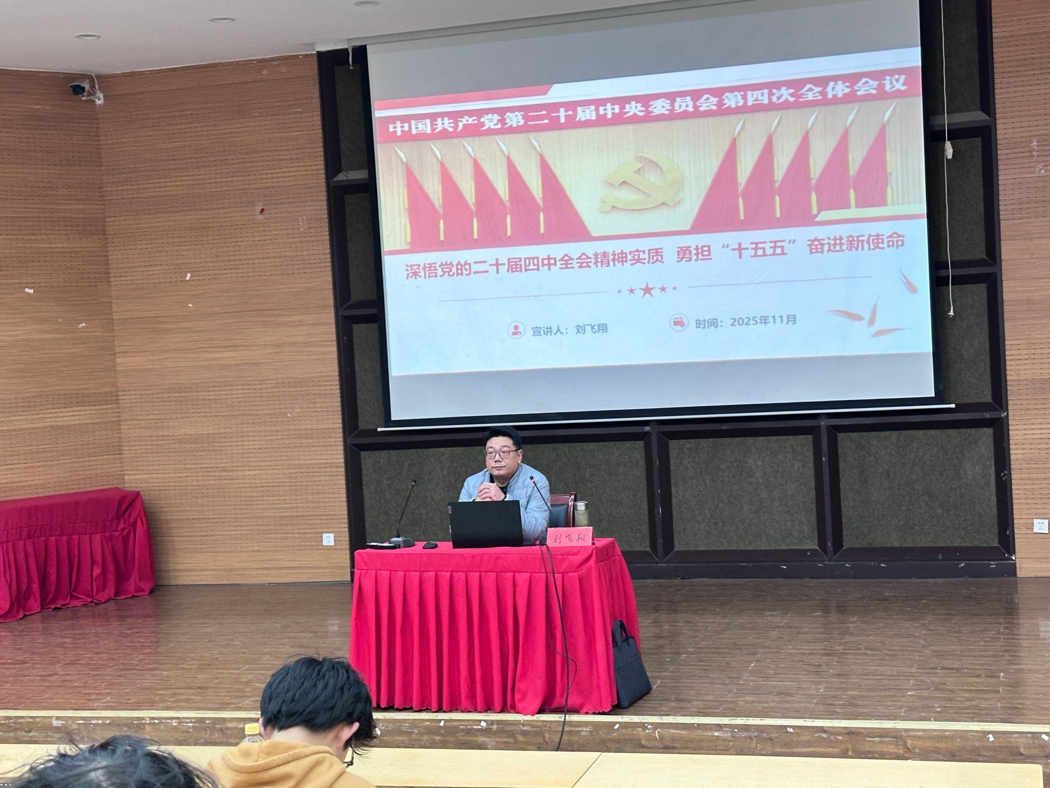 11月29日下午,明德书院党委副书记兼纪委书记刘飞翔深入解读党的二十届四中全会精神,聚焦“以中国式现代化全面推进中华民族伟大复兴”目标,阐述全会重大历史意义。结合国家“十五五”发展规划,分析现代化产业体系构建、科技自立自强等重大战略部署,引导学员思考个人发展与时代进程的融合,明确新时代青年使命担当。