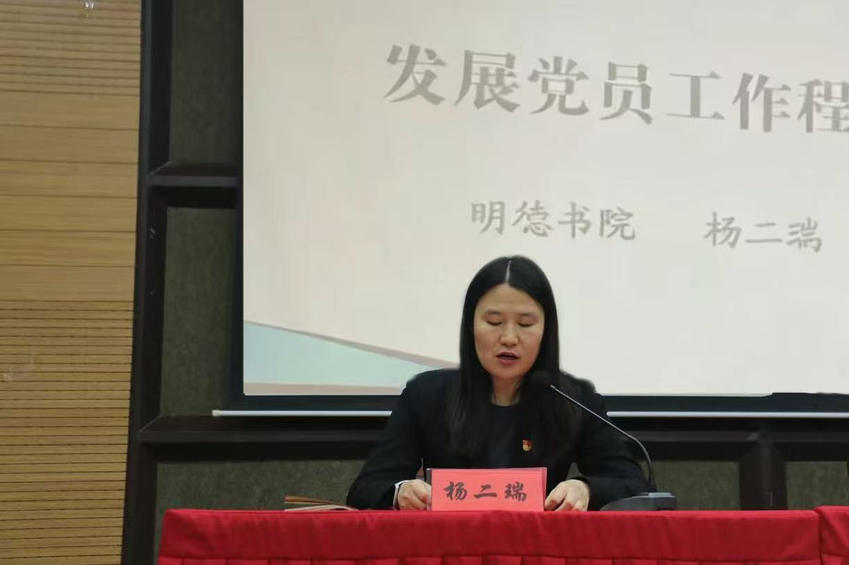 11月22日, 明德书院党委副书记杨二瑞以《发展党员工作流程》为题进行授课分享。培训紧扣《中国共产党发展党员工作细则》内容实质,重点围绕发展党员5个阶段25个主要流程展开详细讲解,涵盖从入党申请人递交申请书开始,到预备党员转正的发展党员全过程。同时,采用理论与实践相结合的模式,充分运用典型案例分析,列举实际案例,深入剖析在各流程中容易出现的问题及解决方法,为同学们提供可直接借鉴的实践指引。