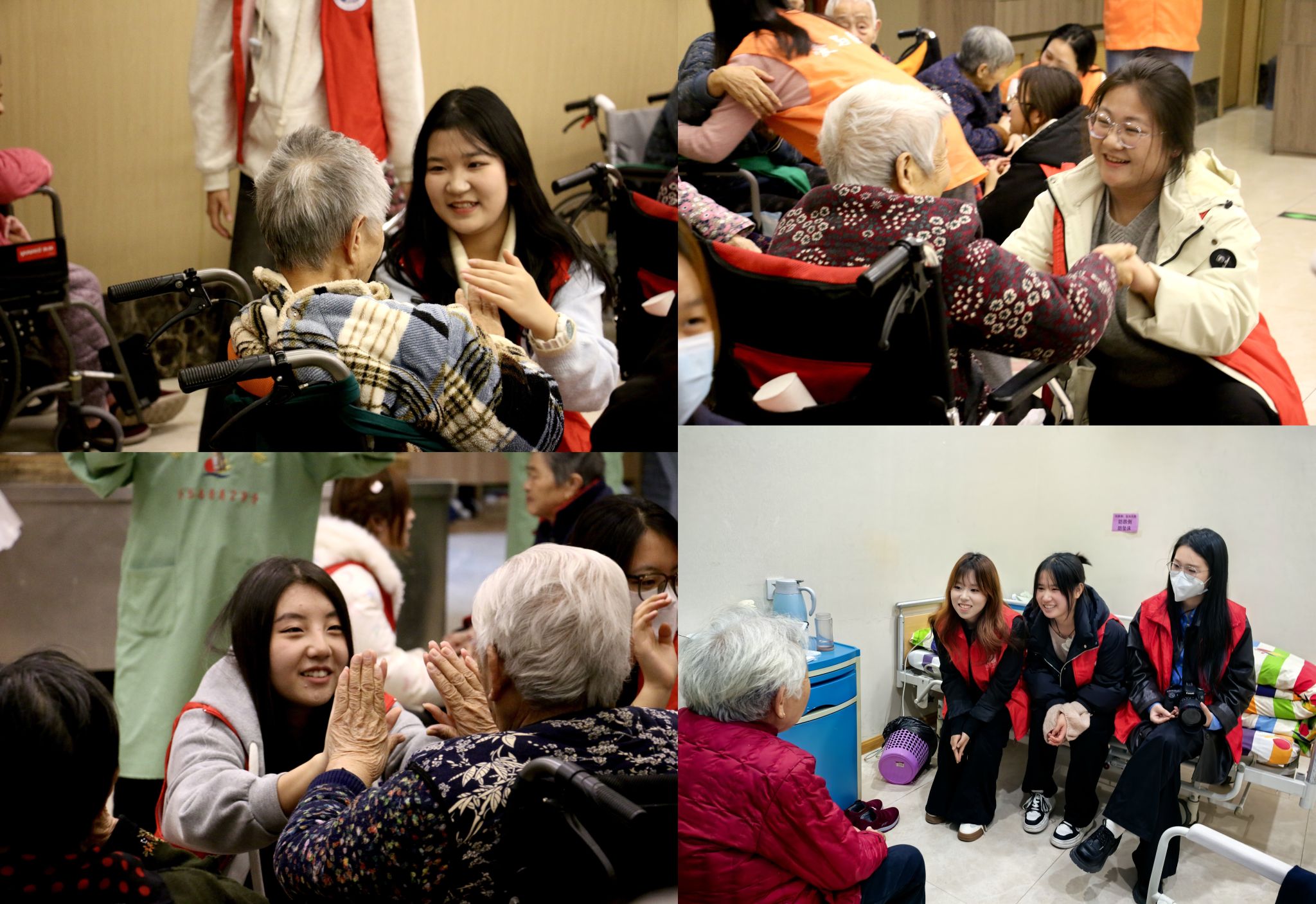 在互动交流环节,同学们如青春使者,分组围坐老人身旁促膝长谈。他们专注倾听老党员的奋斗故事,那些激昂过往与坚定信念,如明灯照亮青年前行路,让大家感受到老一辈的崇高精神。同时,同学们还耐心教老人使用智能手机,助其跨越数字鸿沟。老人们也畅谈对国家发展的感受,对当下幸福晚年生活欣慰不已,对青年寄予厚望。青春与“夕阳”的暖心对话,如暖流般让理论宣讲接地气、有温情,完成红色精神接力传承,现场欢声笑语,气氛热烈融洽。