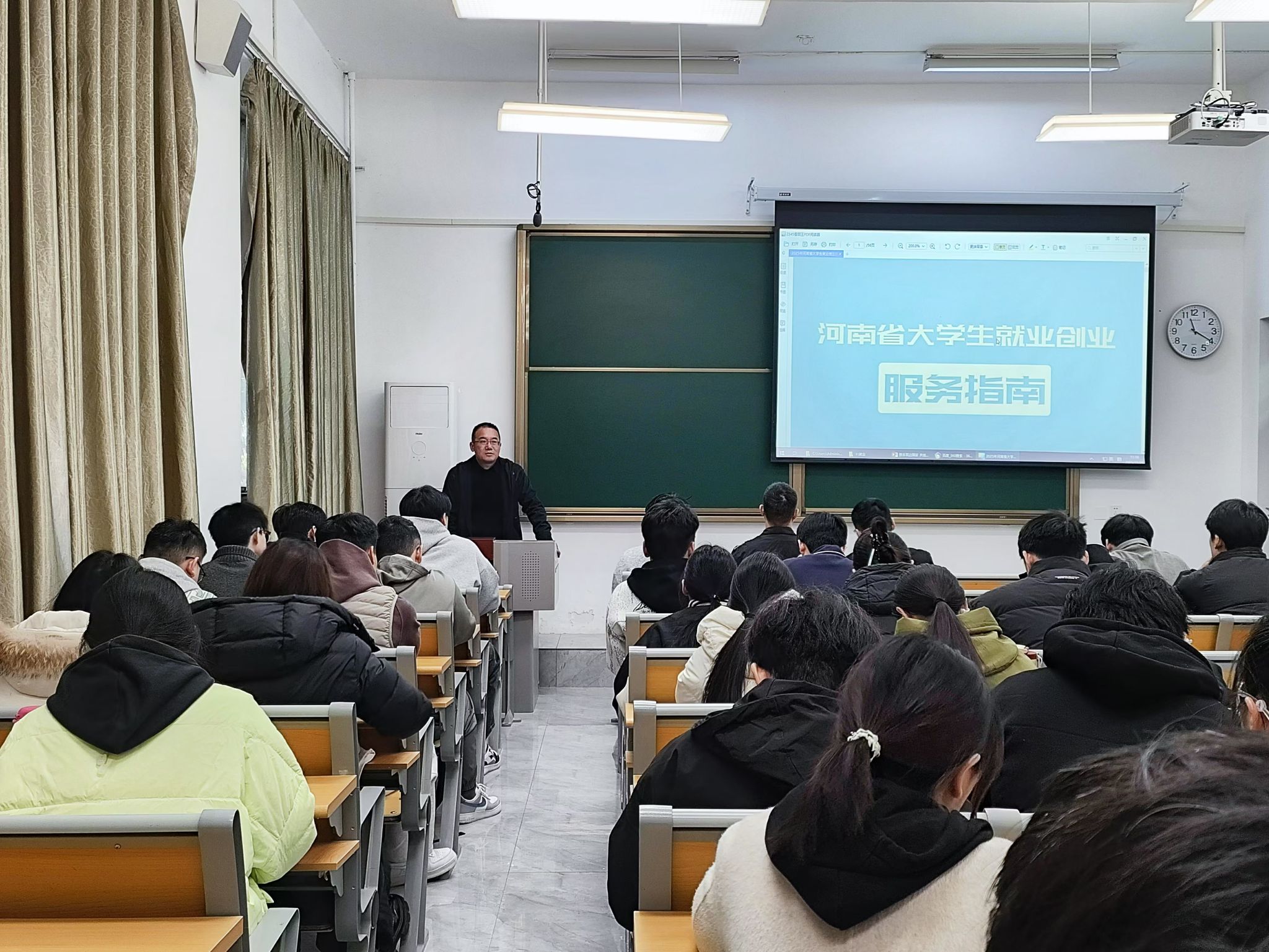 会议伊始,薛晓晓围绕当前就业形势与行业发展趋势,结合最新就业政策与高校毕业生就业扶持举措,为同学们解读了就业市场的核心需求与竞争亮点。针对考研考公群体,薛晓晓肯定了同学们的奋斗精神,鼓励大家坚定目标、调整心态,以饱满的热情投入到最后冲刺阶段,同时提醒同学们做好“考研/考公+就业”双线准备,合理规划时间,避免盲目跟风,确保就业道路多元畅通。