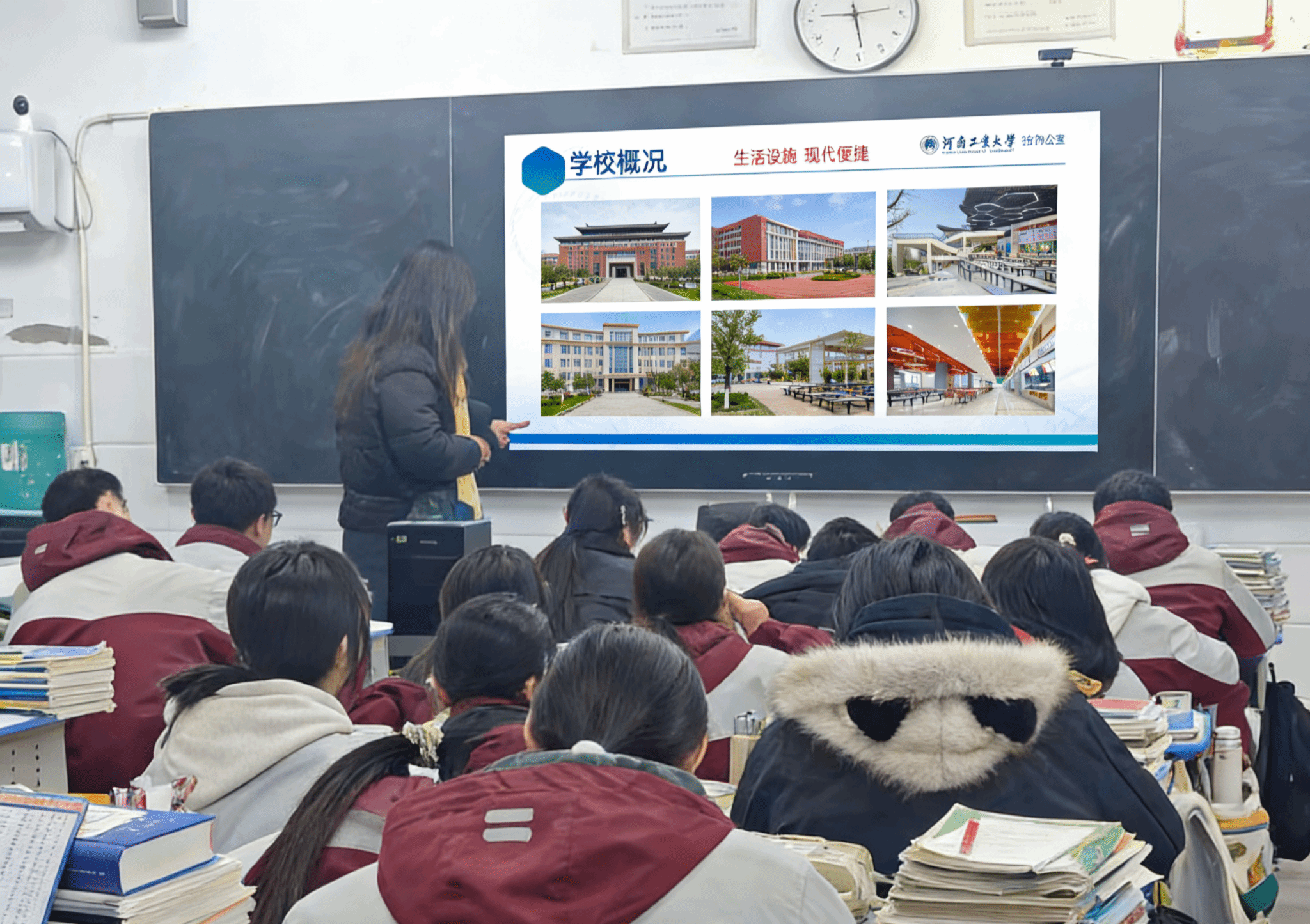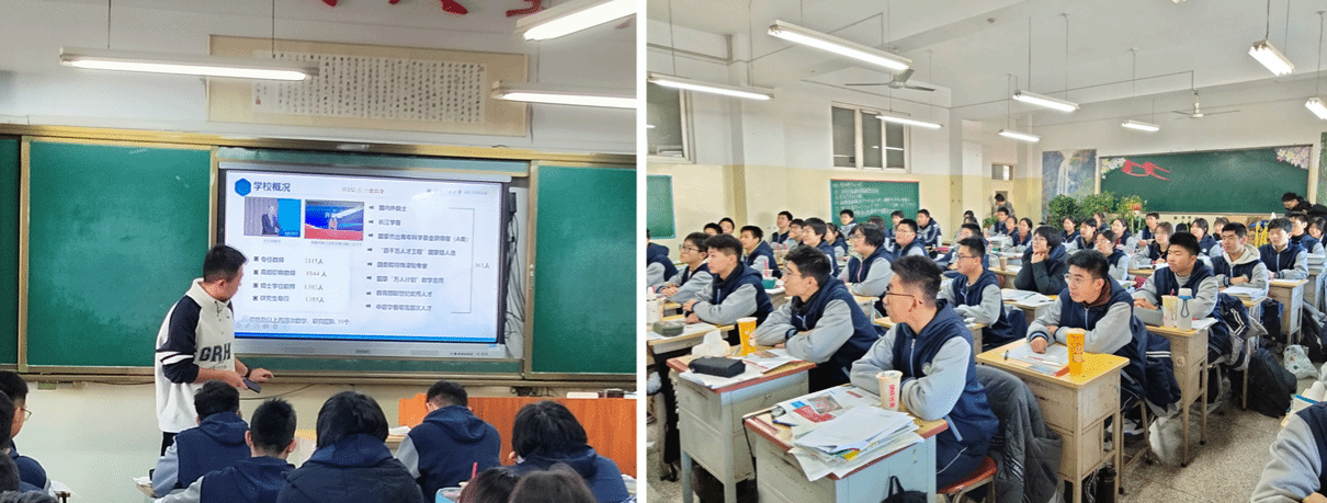 1月30日,空间信息与数字技术专业学子陈哲回到母校。他通过播放校园视频、展示精美PPT,系统介绍了河南工业大学的办学特色、优势专业及校园文化,并重点结合自身就读的空间信息与数字技术专业,分享了大学的课程体系、实践平台与发展前景。在互动环节,陈哲耐心解答了关于备考策略、专业选择与大学生活适应等问题,以“过来人”的真诚鼓励大家坚定目标,从容应考。