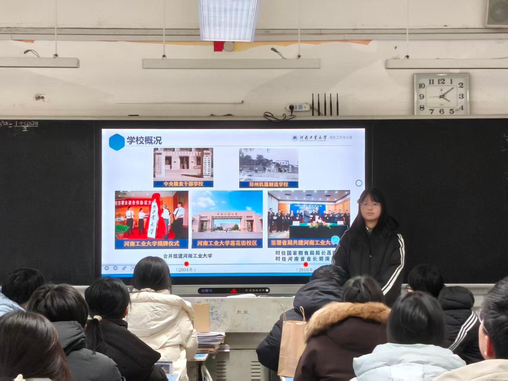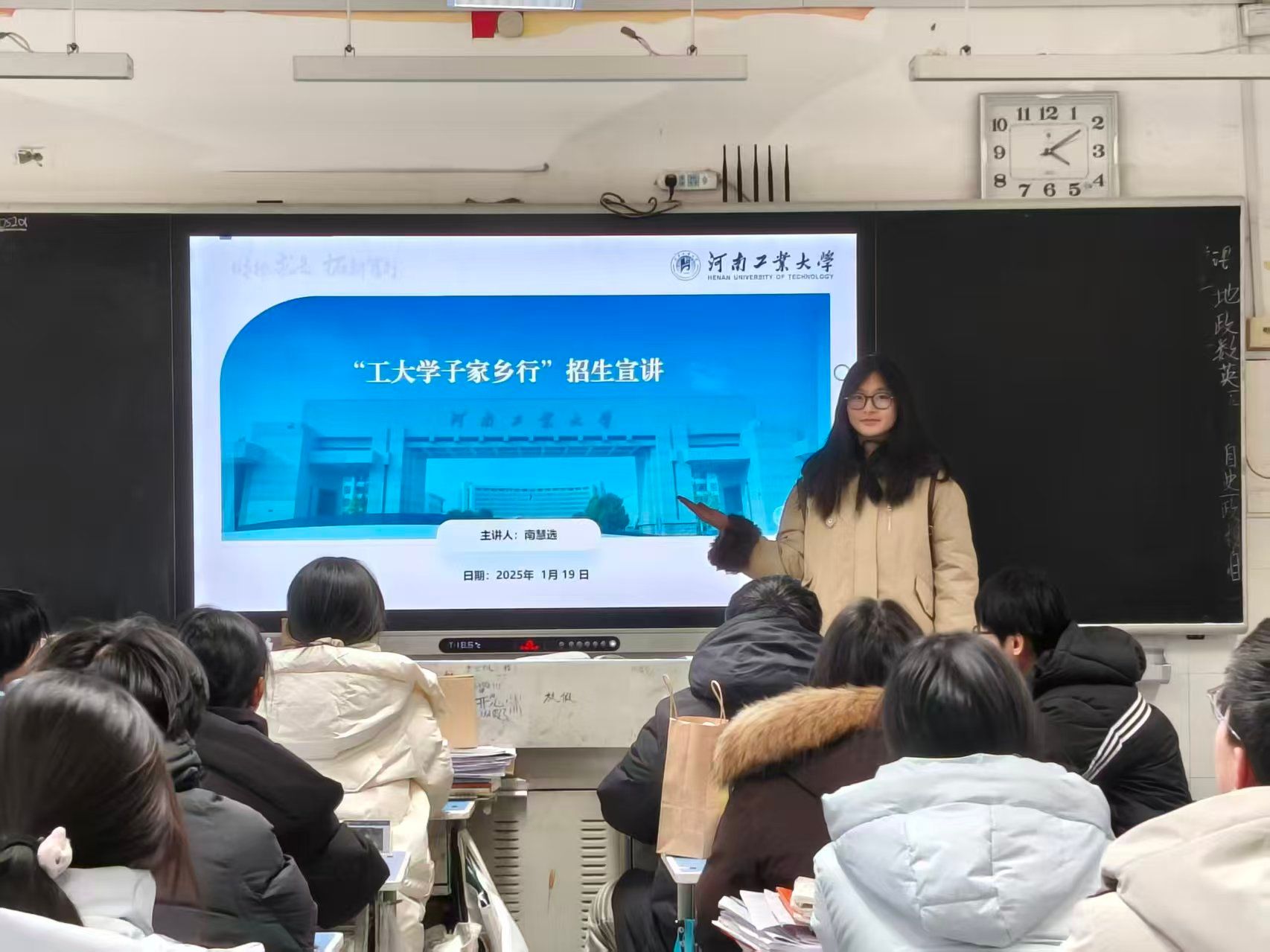 1月28日,带着对母校的深深眷恋,杨子涵回到了安阳市实验中学。她深情讲述了河南工业大学 “明德、求是、拓新、笃行” 的校训精神,详细介绍了法学专业完善的实践平台,包括各类专业实习基地、实践项目等,让学弟学妹们清晰了解到河工大在法学人才培养方面的优势。通过这次宣讲,杨子涵不仅向母校传递了高校的优质资源,更在分享中深刻体会到 “法学人” 所肩负的责任与温度。