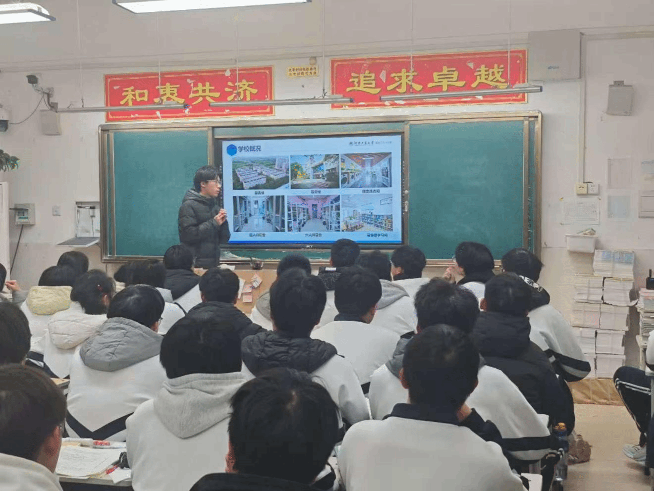 1月27日,工商管理专业阮榆桐同学返回母校确山县第一高级中学开展宣讲。活动以宣传视频引入,她围绕学校概况、资助政策、报考建议等方面展开系统讲解,结合互动答疑为学弟学妹提供清晰的升学指导。本次实践既帮助高中学生拓宽视野、明确目标,也锻炼了阮榆桐的沟通表达能力,展现了工大学子的社会责任感和爱校荣校情怀。