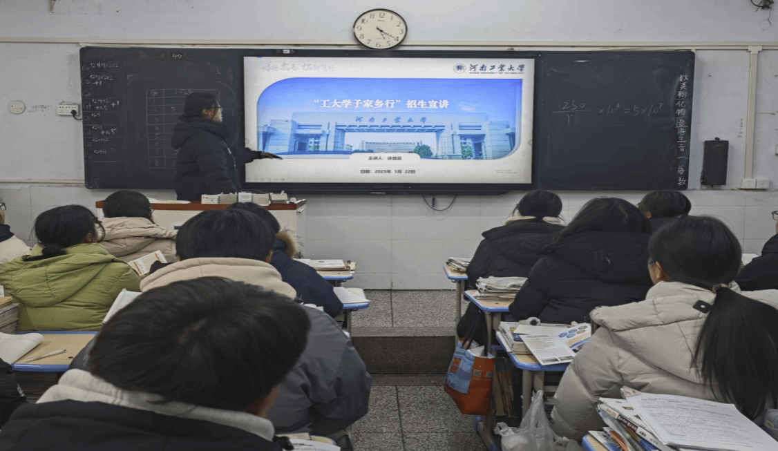 1月22日,孙娜和刘译戈前往大别山高中,面向物化地班级师生开展招生宣讲。活动中通过图文展示、现场讲解与互动问答,系统介绍了河南工业大学的办学特色、学科优势及校园文化,并分发宣传资料与文创纪念品。现场气氛热烈,学生提问踊跃,展现出对大学生活的浓厚兴趣与报考意愿。本次活动搭建了高中与高校的有效沟通桥梁,为学生提供了实用的升学指导,也展现出工大学子的责任感与实践能力,进一步传递了学校的育人理念与校园精神。