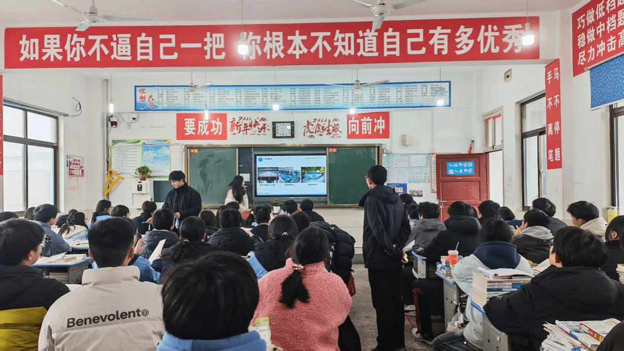2026年寒假,河南工业大学明德书院外语类专业学子跨越山海,奔赴辽宁沈阳、江苏东台、河南封丘、驻马店等多地高中校园,开展“母校回访”社会实践活动。他们以朋辈身份分享亲身经历,讲述工大生活与专业特色,在答疑解惑中勾勒真实的大学生活图景。这不仅是一场场招生宣讲,更是一次成长的回归、一场精神的接续——学子们既是工大故事的讲述者,也是连接高中与大学的生动纽带,让高校的育人情怀与青春气息,浸润着每一颗奔赴未来的年轻心灵。
