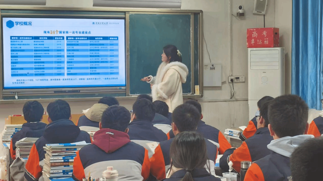 在宣讲活动中,宣讲成员向高三学子们分发宣传册,让同学们对河南工业大学的各专业进行初步了解;她们立足于自身专业,深层次讲解本专业的未来发展趋势及职业规划走向;她们结合自身学习经验为学弟学妹们提供备考建议,助力高中学子合理备考,勇夺高峰。