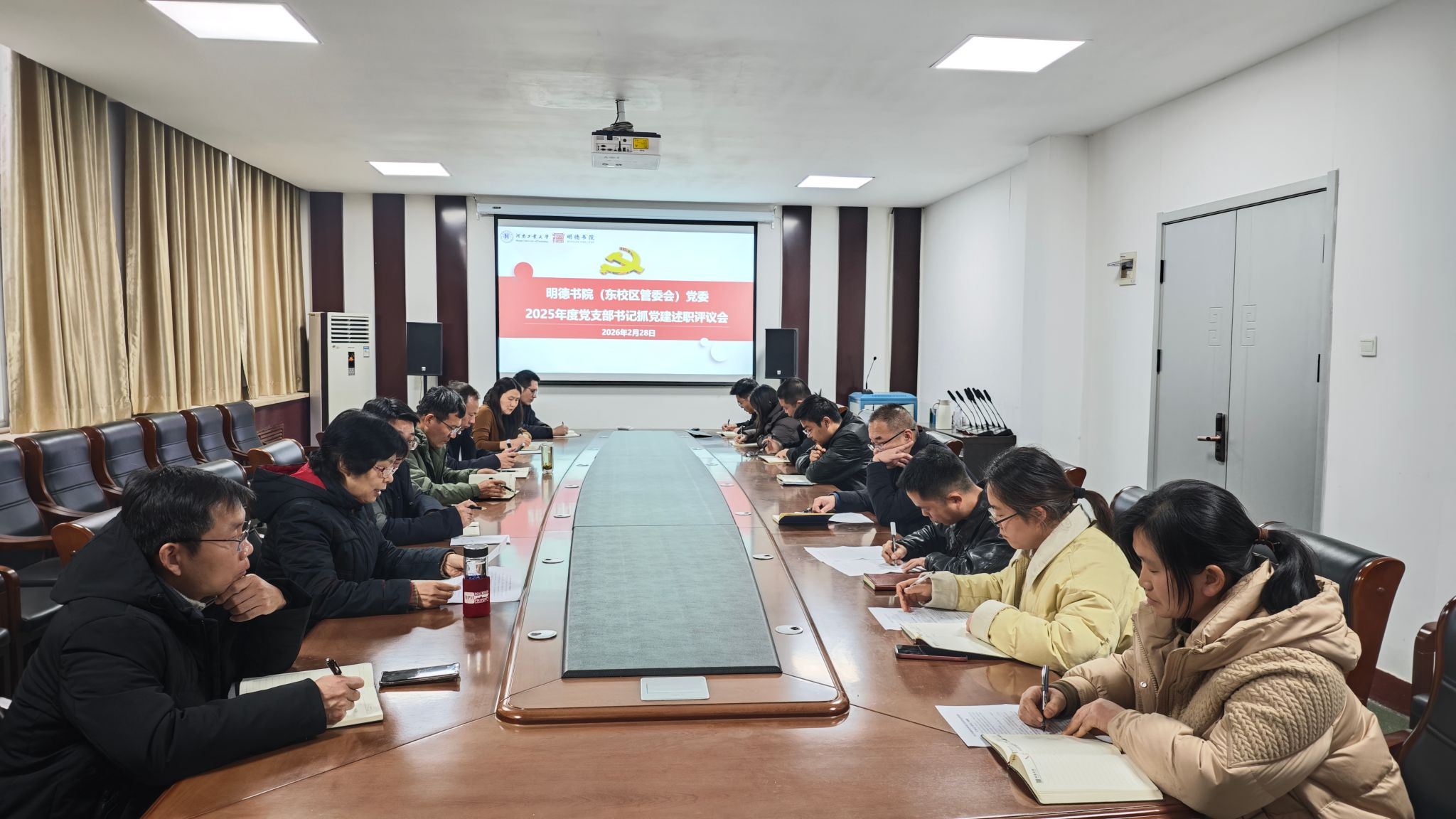 为全面检验基层党建工作成效,压紧压实党支部书记抓党建 “第一责任人” 职责,推动书院党建工作提质增效,2月28日下午,明德书院党委在207会议室召开2025年度党支部书记抓党建述职评议会。书院党委书记魏朝举主持会议,书院党委委员、各党支部书记及支委参加会议。