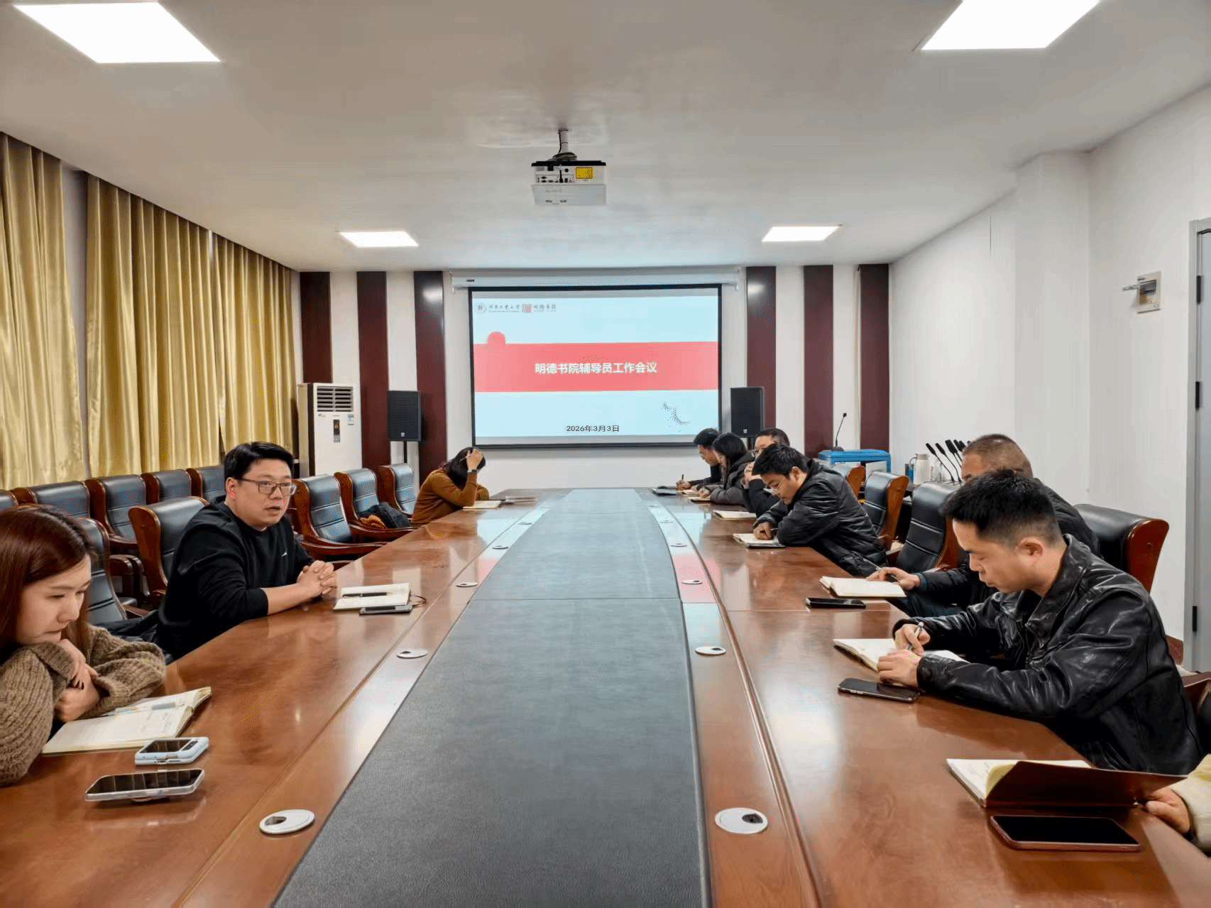 为明确春季学期学生工作方向、压实工作责任,3月3日下午,明德书院在办公楼207会议室召开新学期辅导员工作例会。书院党委副书记刘飞翔、杨二瑞及全体辅导员参会,会议由刘飞翔主持。