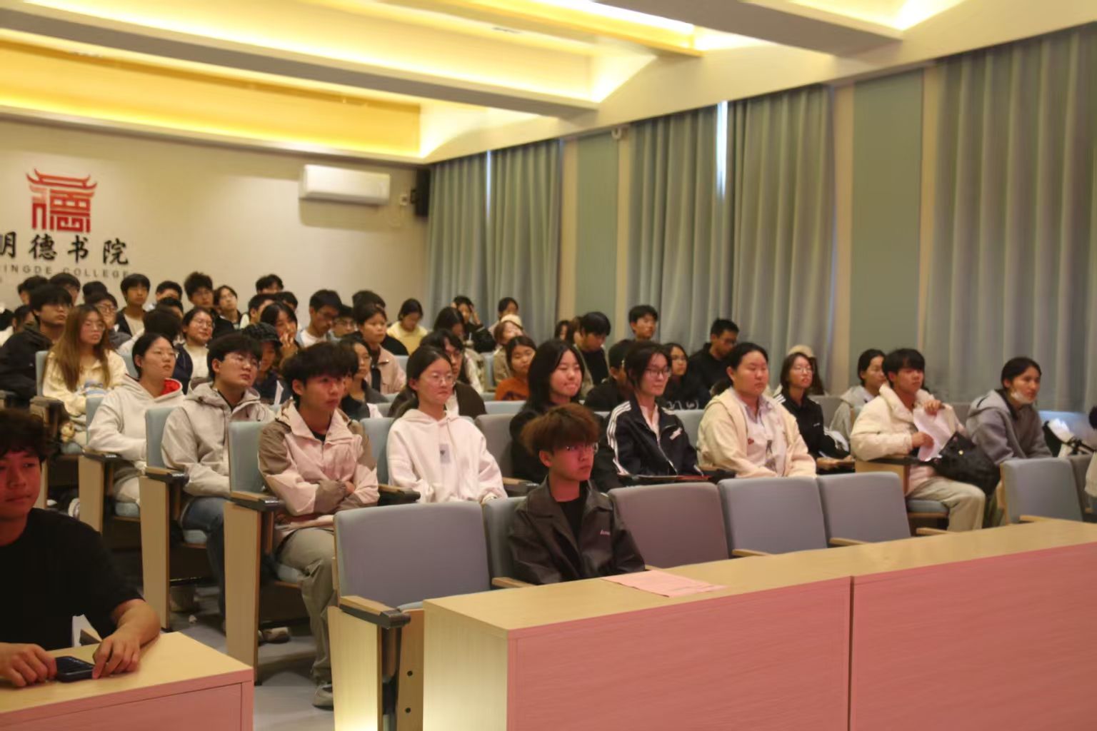 为深入学习贯彻党的创新理论,夯实团员发展基础,强化青年思想引领,确保入团积极分子培养质量,2025年11月4日,明德书院在嵩山路校区3118报告厅举行“明德书院分团校第七期入团积极分子培训班开班典礼”。此次典礼旨在统一新一期入团积极分子思想,明确努力方向,激发他们积极向团组织靠拢的内生动力。明德书院党委副书记杨二瑞、团委书记刘振伟和部分学生团员代表出席本次开班仪式。本次开班仪式由书院学工办主任薛晓晓程主持。