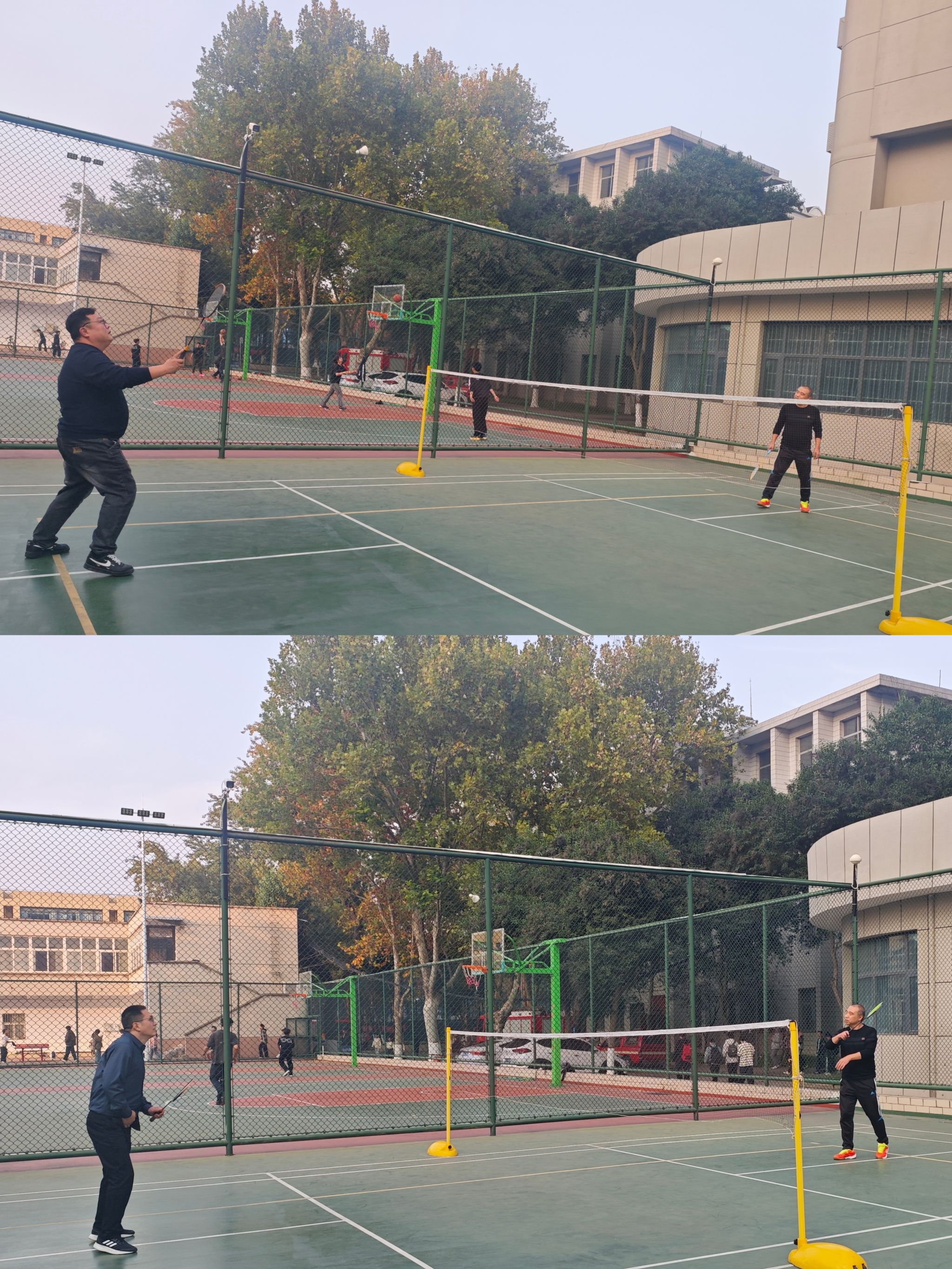 赛场上,老师们化身活力四射的运动员,个个精神抖擞,意气风发。自由练习区内,老师们自由组合,捉对厮杀,单打、双打轮番上阵。羽毛球在空中划出一道道优美的弧线,时而轻盈吊球,时而大力扣杀,精湛的球技不时引来阵阵喝彩。加油声、欢呼声、笑语声此起彼伏,气氛热烈非凡。
